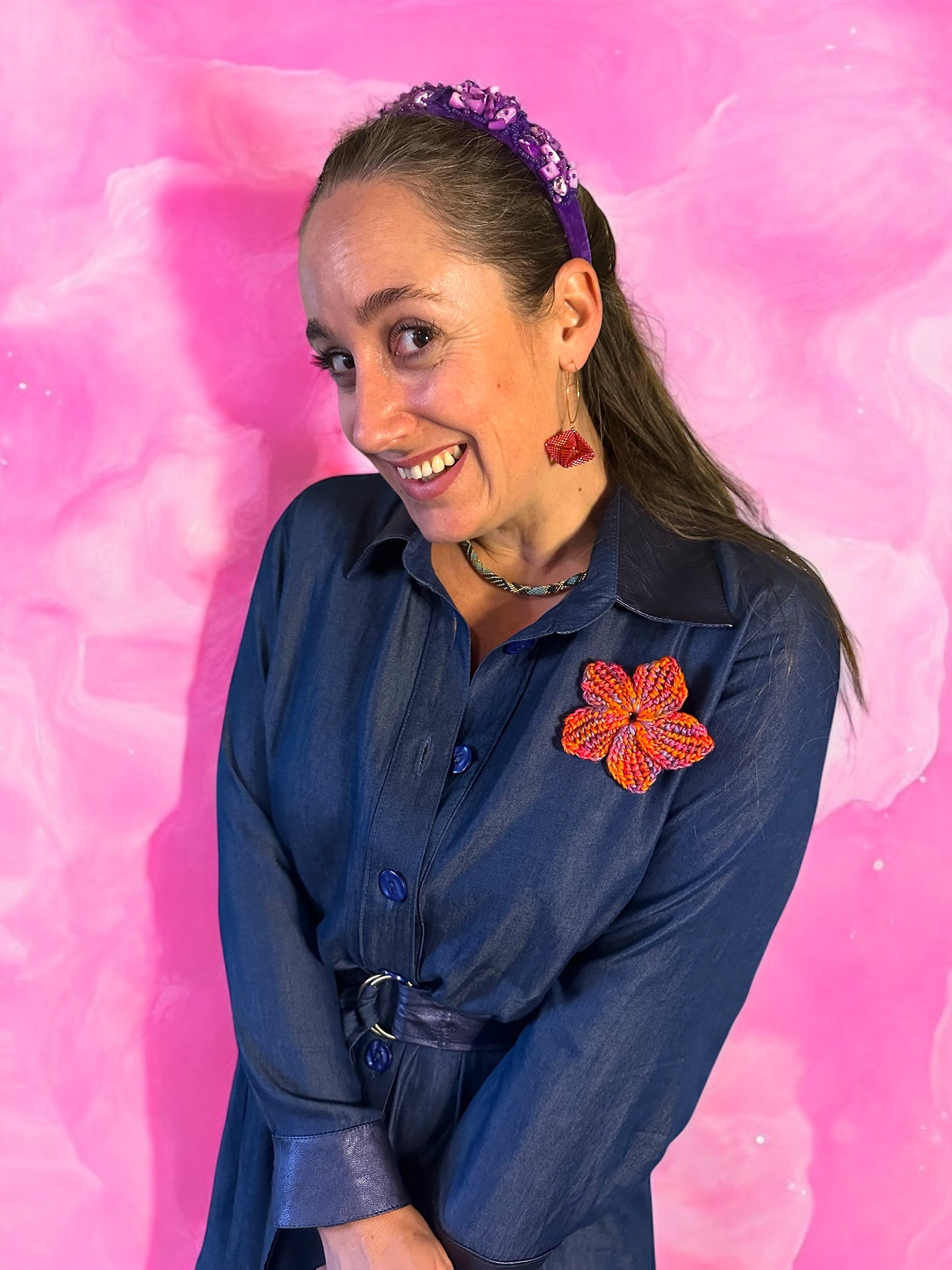 Hoe gaaf dat je een natuurlijke elegantie toe kan voegen aan je outfit met deze unieke handgemaakte broche, gemaakt van innovatief zeewier garen. Het garen wordt in Nederland met de hand en op duurzame wijze koud geverfd, wat zorgt voor een prachtig kleurverloop in de warme tinten van een zonsondergang.