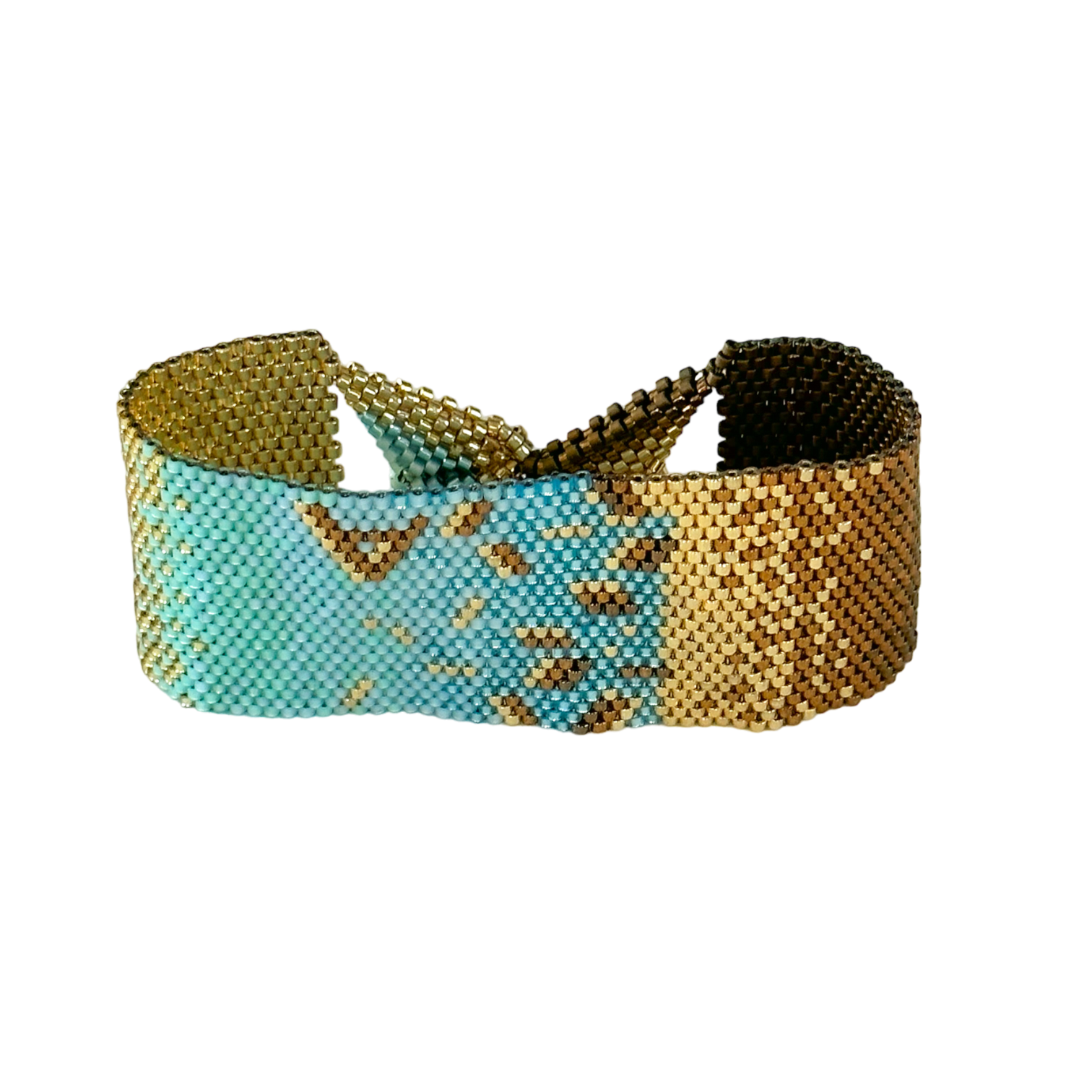 This unique lightweight bracelet contains no fewer than 2366 Delica beads that I put together one by one, but the result is spectacular.