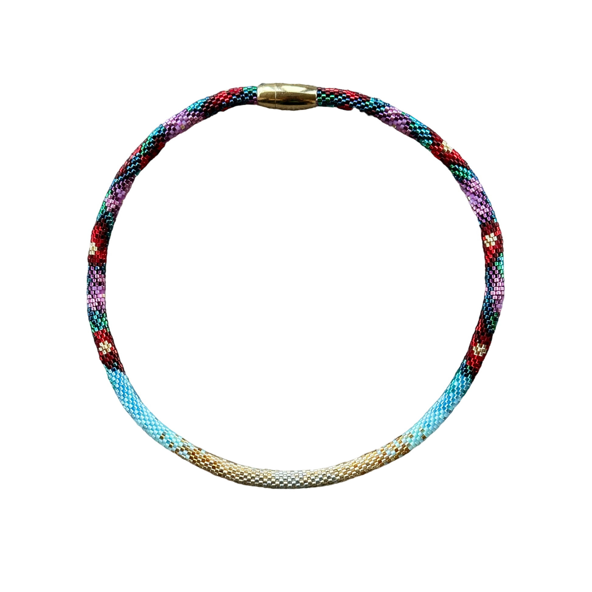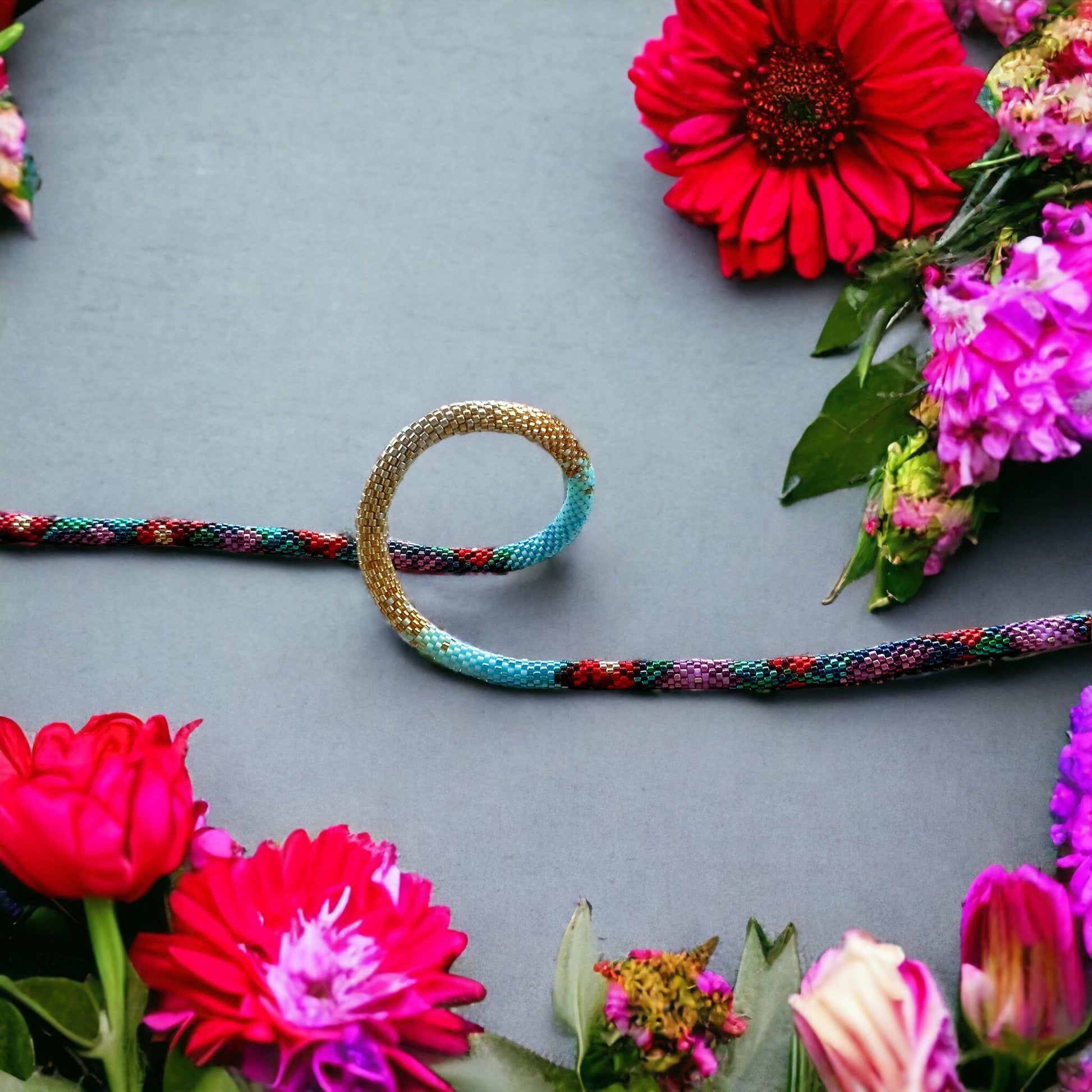This gorgeous lightweight necklace features a pink and red flower pattern.