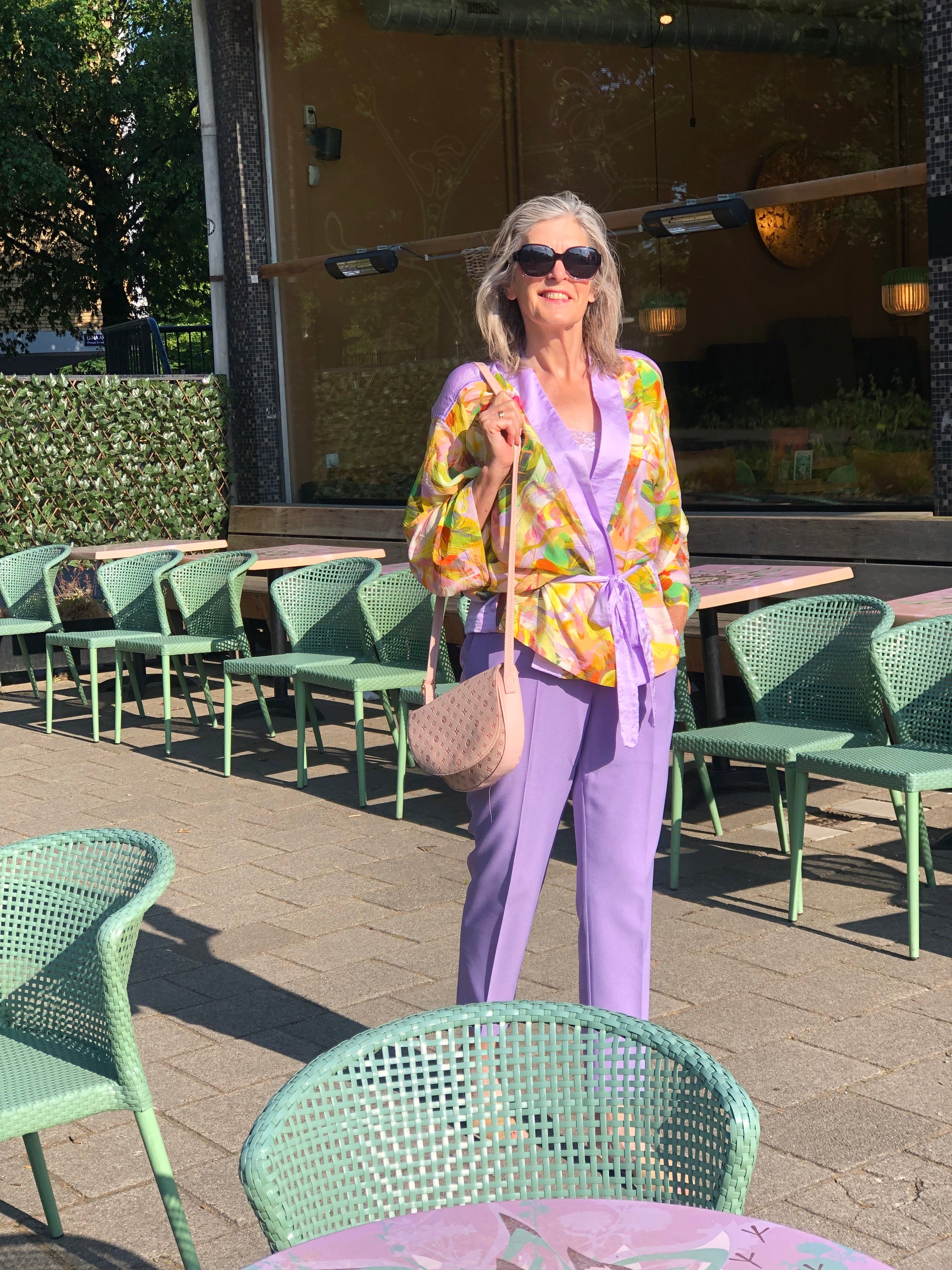 Deze kimono is ontworpen met oog voor detail: het rugpand, de revers en het ceintuur zijn uitgevoerd in effen lichtpaars satijn, wat een prachtig contrast vormt met de print. Je kunt de kimono zowel met ceintuur voor een getailleerde look als los gedragen voor een nonchalante stijl dragen. Ideaal als elegante ochtendjas, zomerse kimono of als modieuze toevoeging over je outfit.
