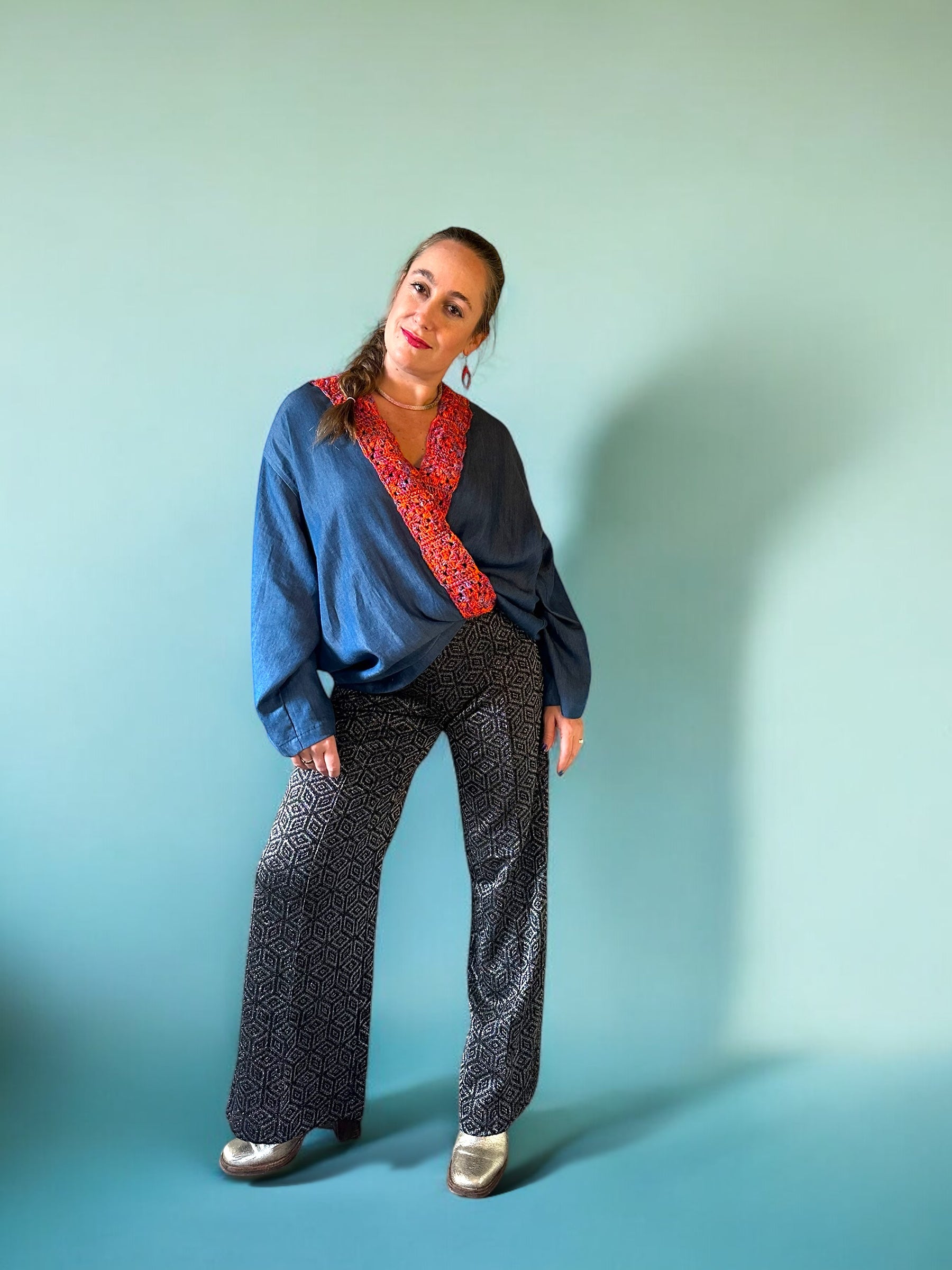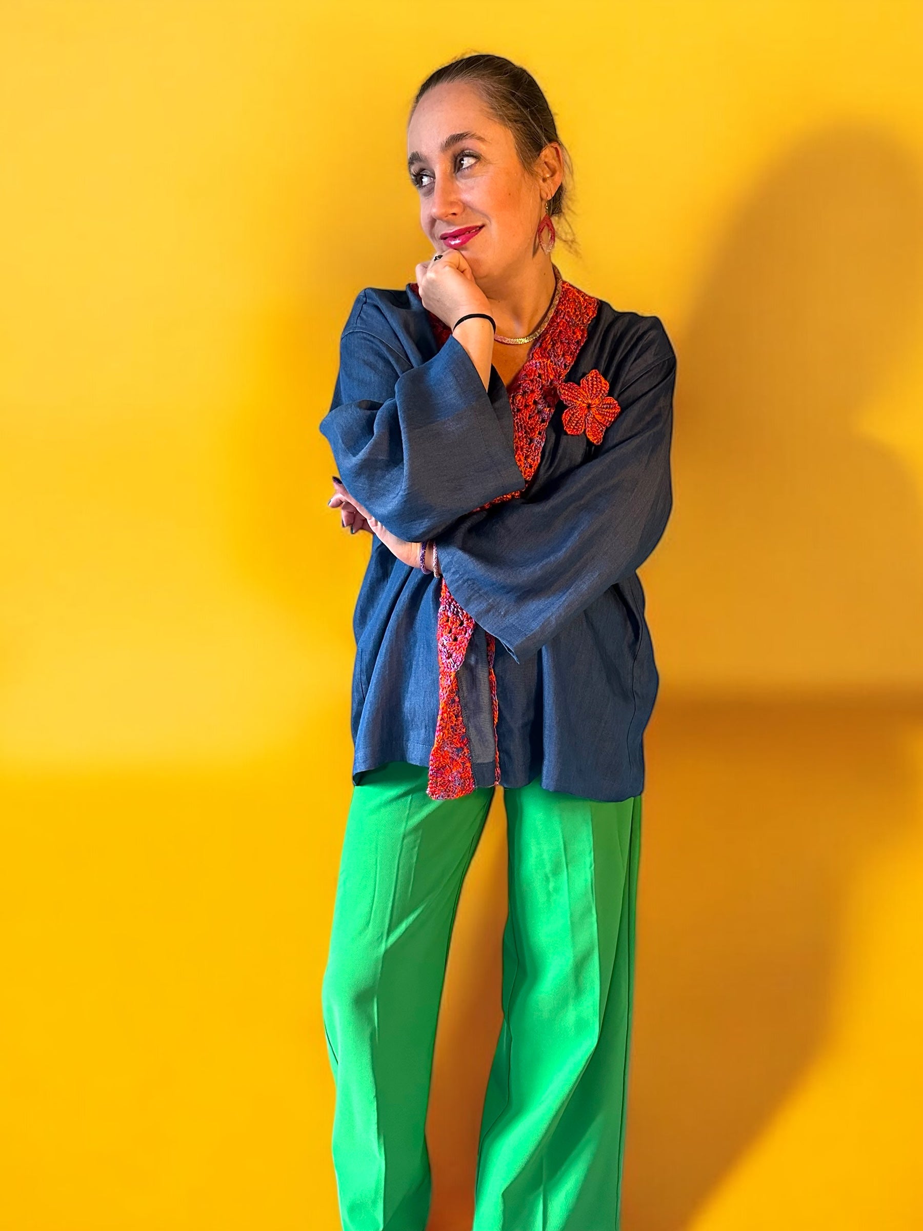Elke kimono wordt met de hand gemaakt door onze vakmensen, wat betekent dat je een echt uniek product in handen hebt. De combinatie van Tencel jeans stof en gehaakte zeewier garen granny squares maakt dit kledingstuk een ware eyecatcher. Of je het nu draagt als statement piece op een zomerse avond of als stijlvolle laag over je dagelijkse outfit, deze kimono tilt je look naar een hoger niveau.