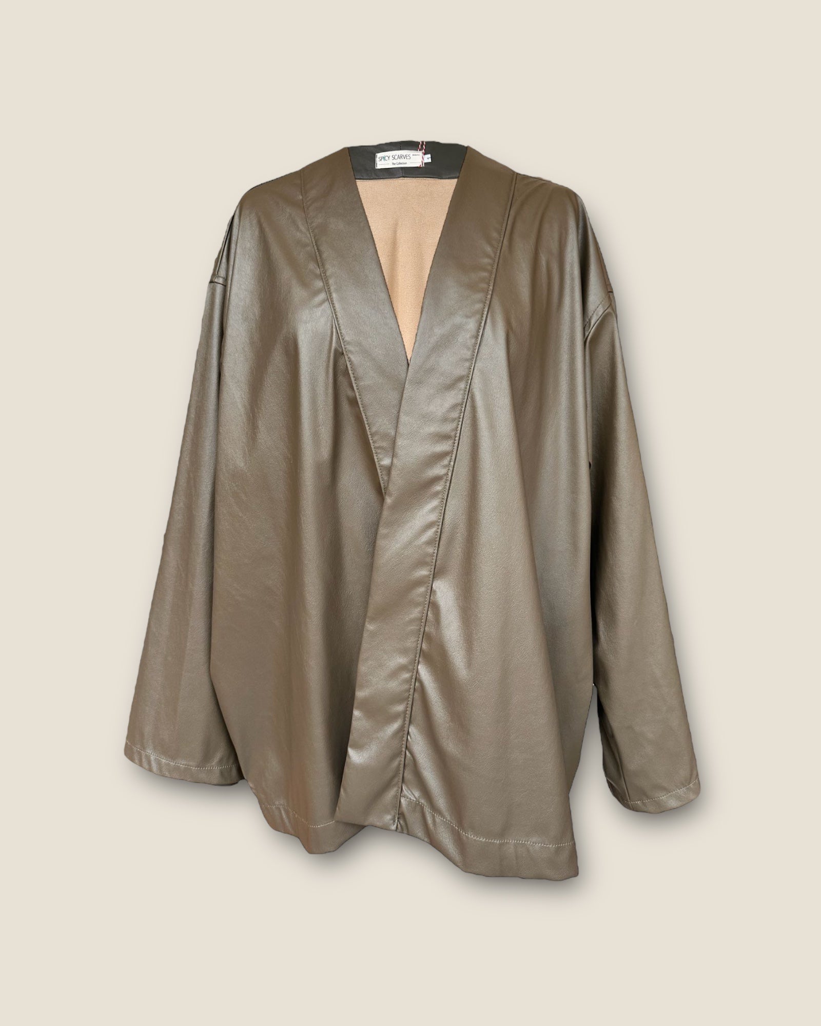 Kimono jacket Forest is a beautiful kimono made of trendy vegan leather. This fabric is waterproof and soft on the inside.