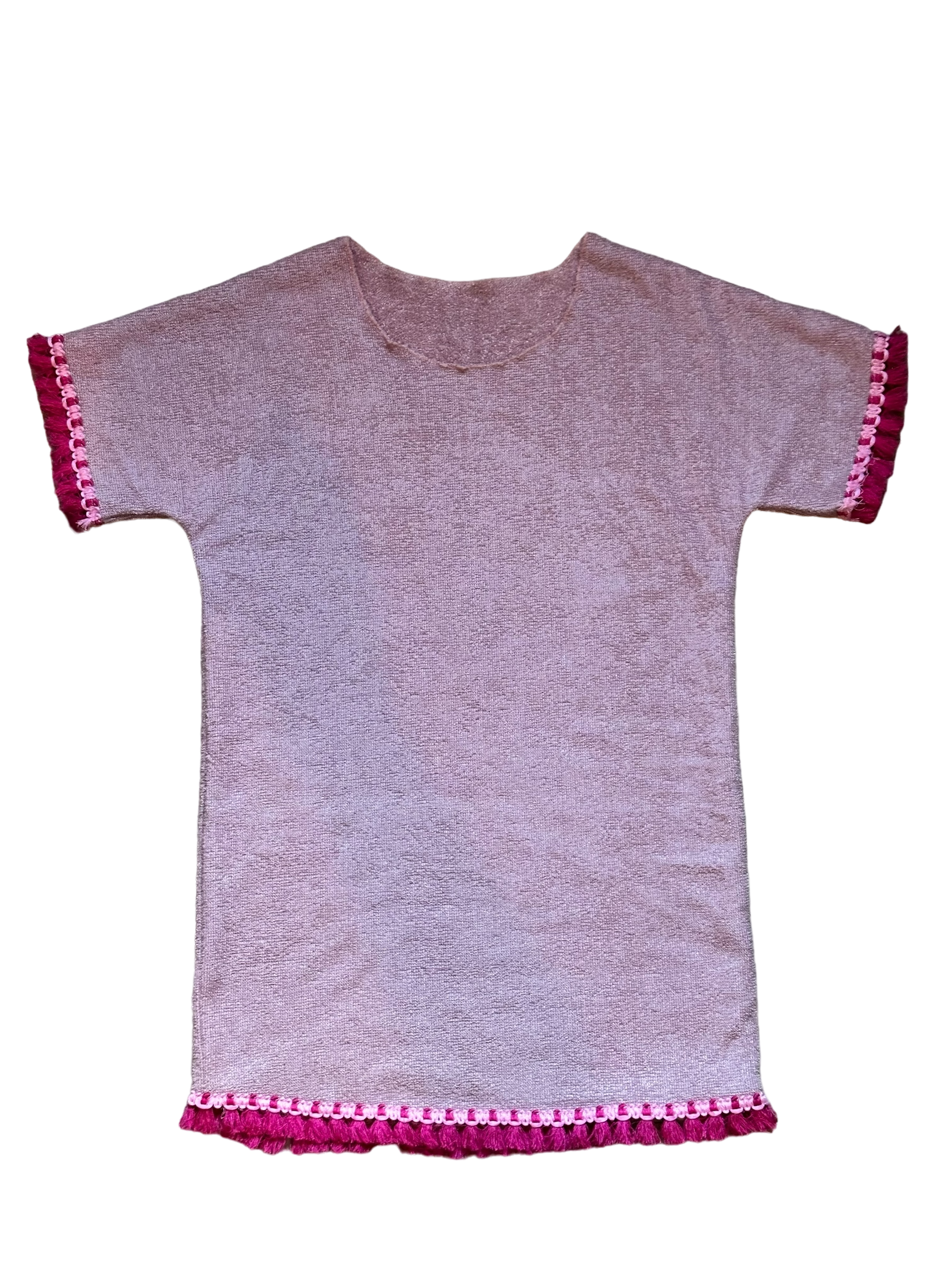 This lovely pink bamboo girls dress radiates summer! She is made of wonderfully soft bamboo terry cloth and finished with a great tassel band. This band gives a playful character to the dress.
