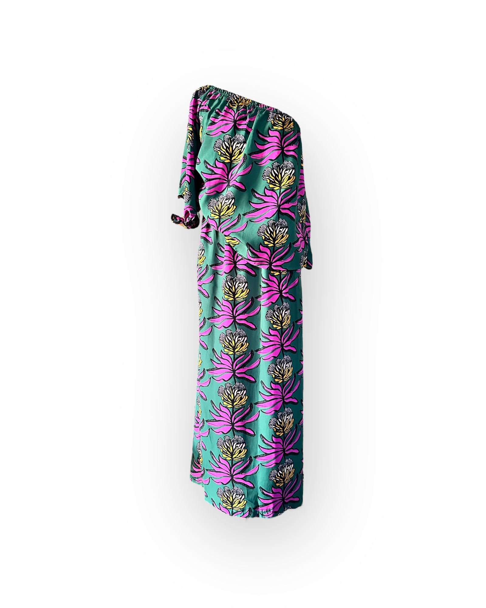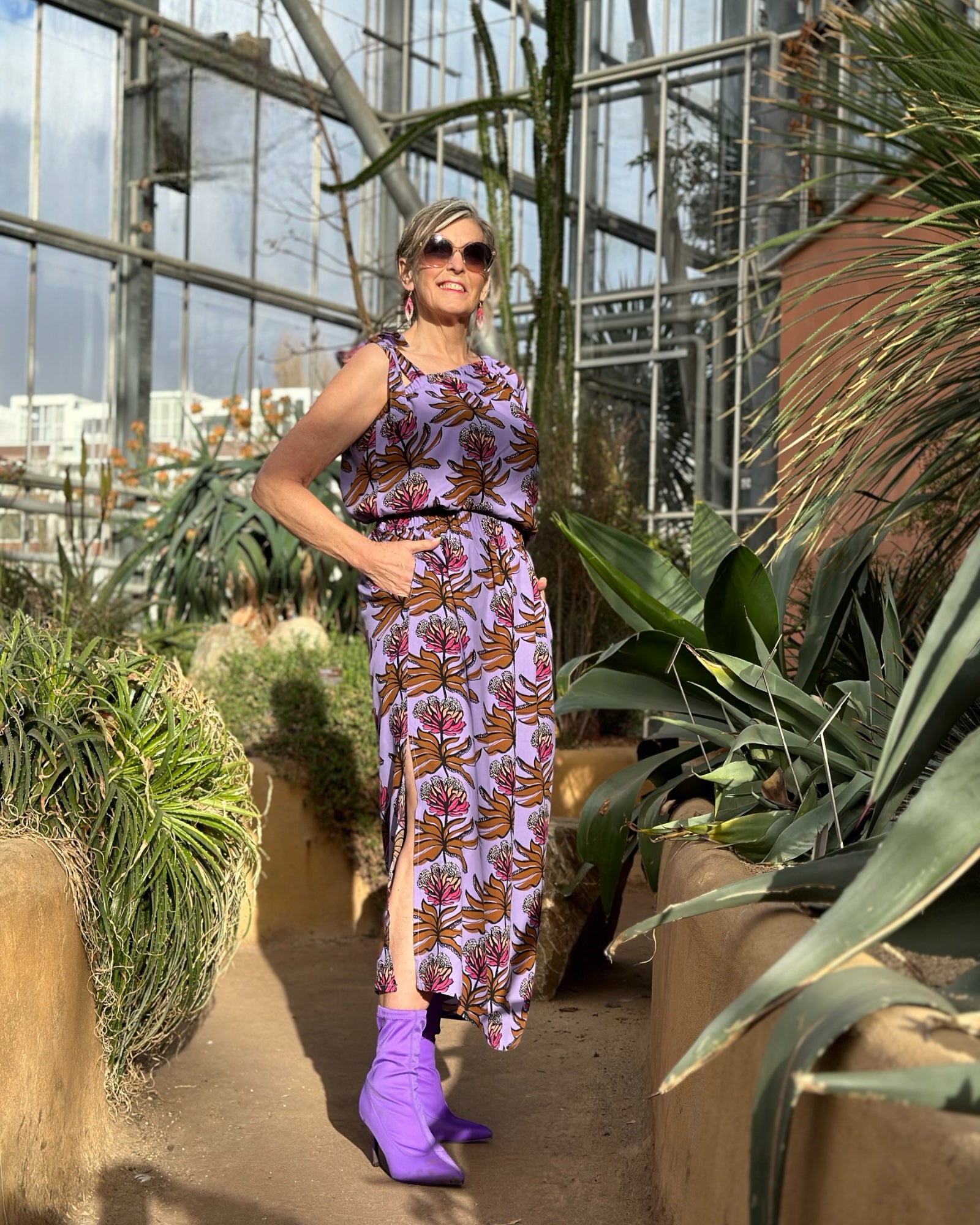 This relaxed maxi skirt features an elastic waistband and pockets in the side seams. There is a slit on the right side. It is available in fantastic patterns!