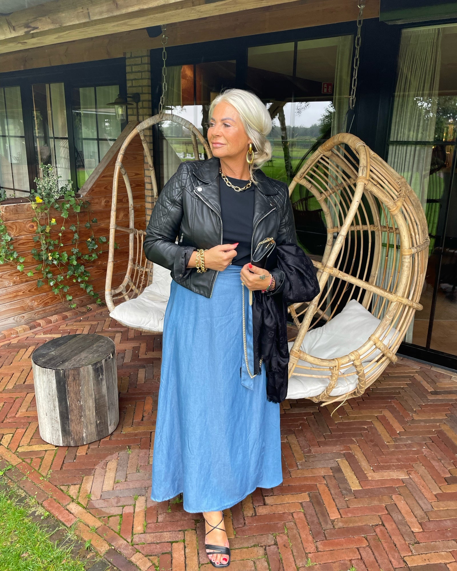 The Jean skirt is a fantastic wrap skirt with lots of flair! This feminine long skirt flows around you and can be worn on both warm and cold days.