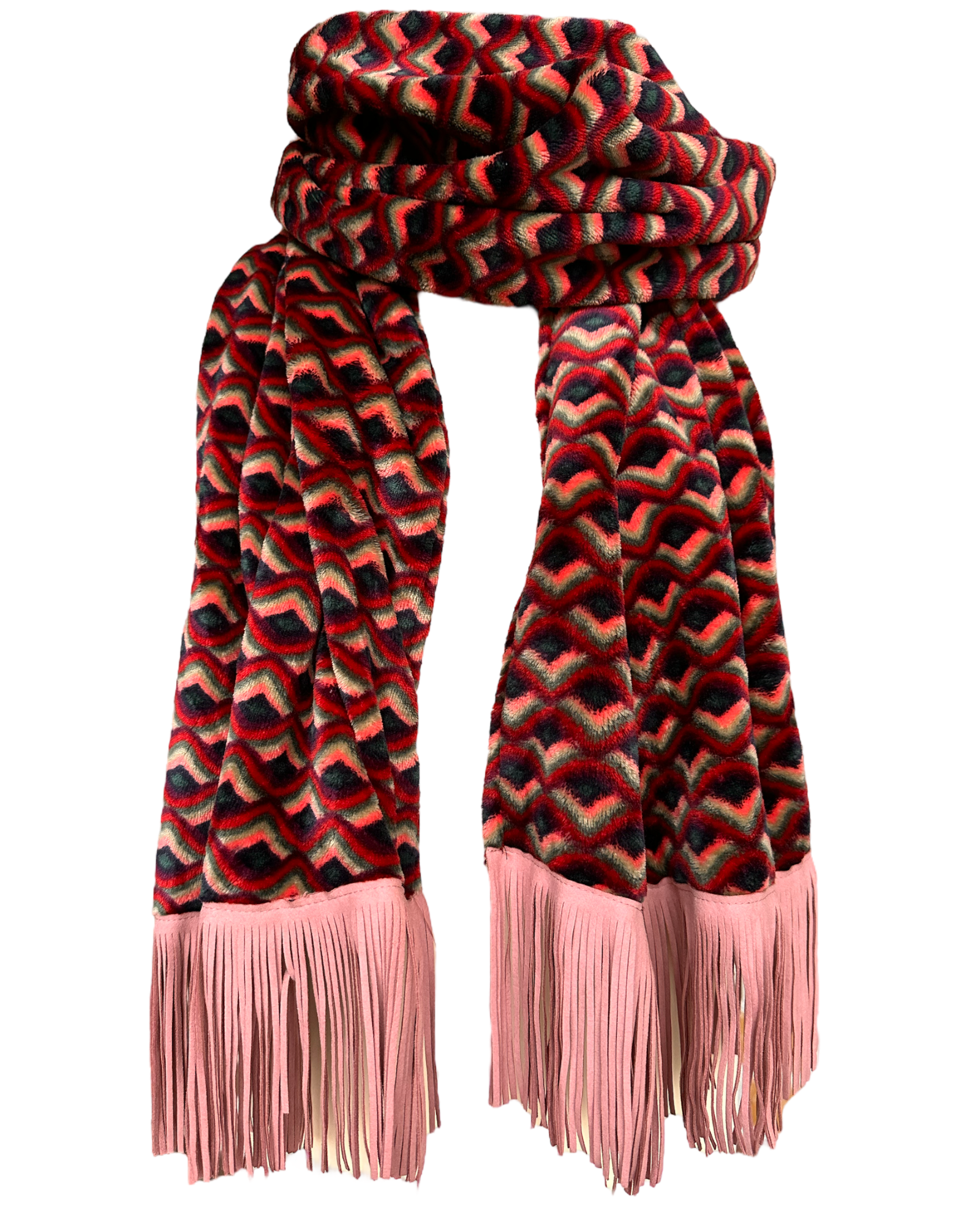 Op zoek naar een warme sjaal die niet alleen comfortabel is, maar ook een echte eyecatcher? De Cuddle Waves sjaal is precies wat je nodig hebt! Deze luxueuze gekleurde sjaal voelt heerlijk zacht aan en is afgewerkt met speelse suède fringes in een bijpassende tint.