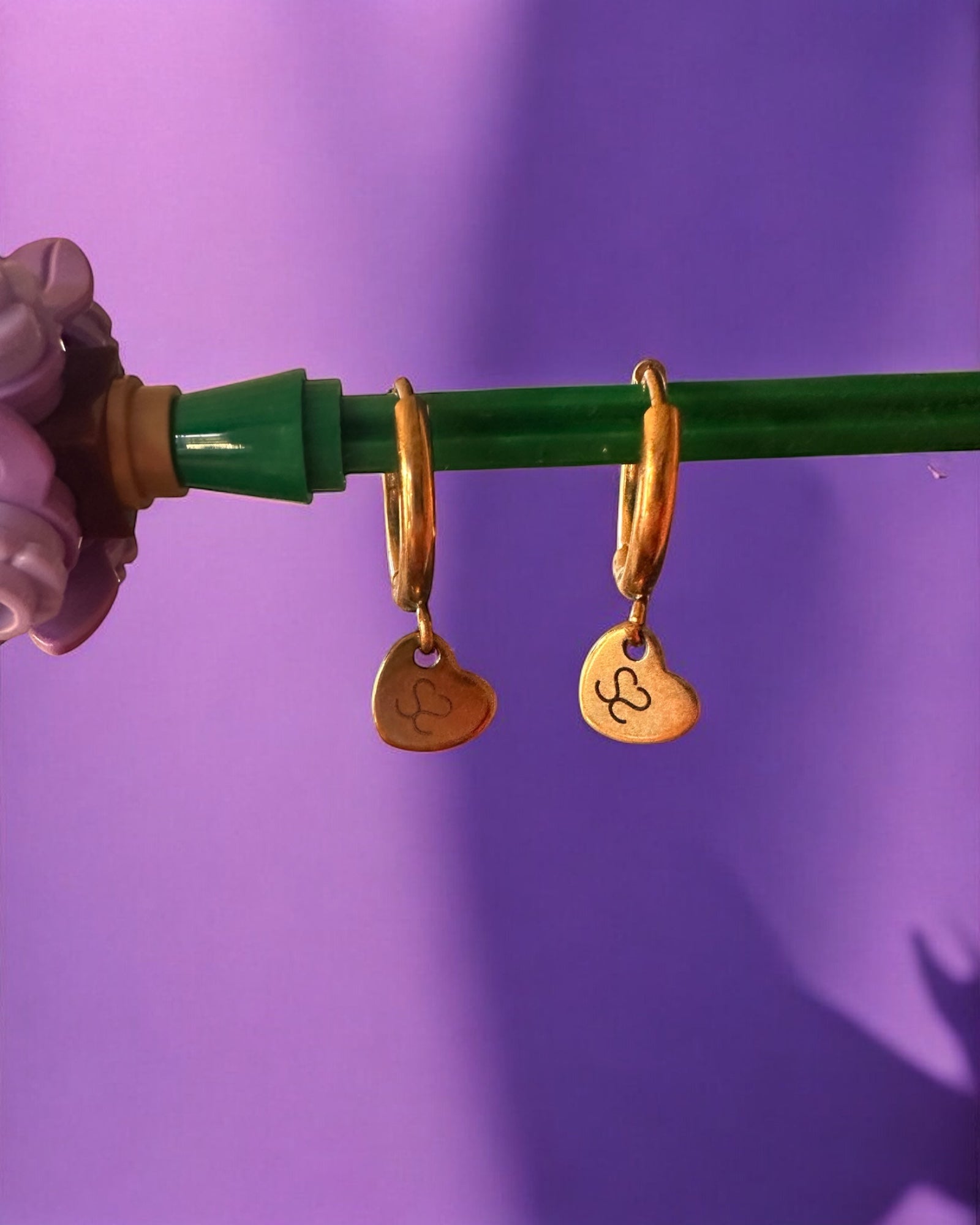 Voeg een vleugje liefde toe aan je ear party met deze prachtige stainless steel (RVS) oorringen, afgewerkt met een hartvormige hanger. Elk hartje is subtiel gegraveerd met het Summer Sky logo, een symbool van positiviteit, lichtheid en stijl. Dankzij het minimalistische en toch verfijnde ontwerp passen deze oorringen perfect bij zowel casual als chique looks.