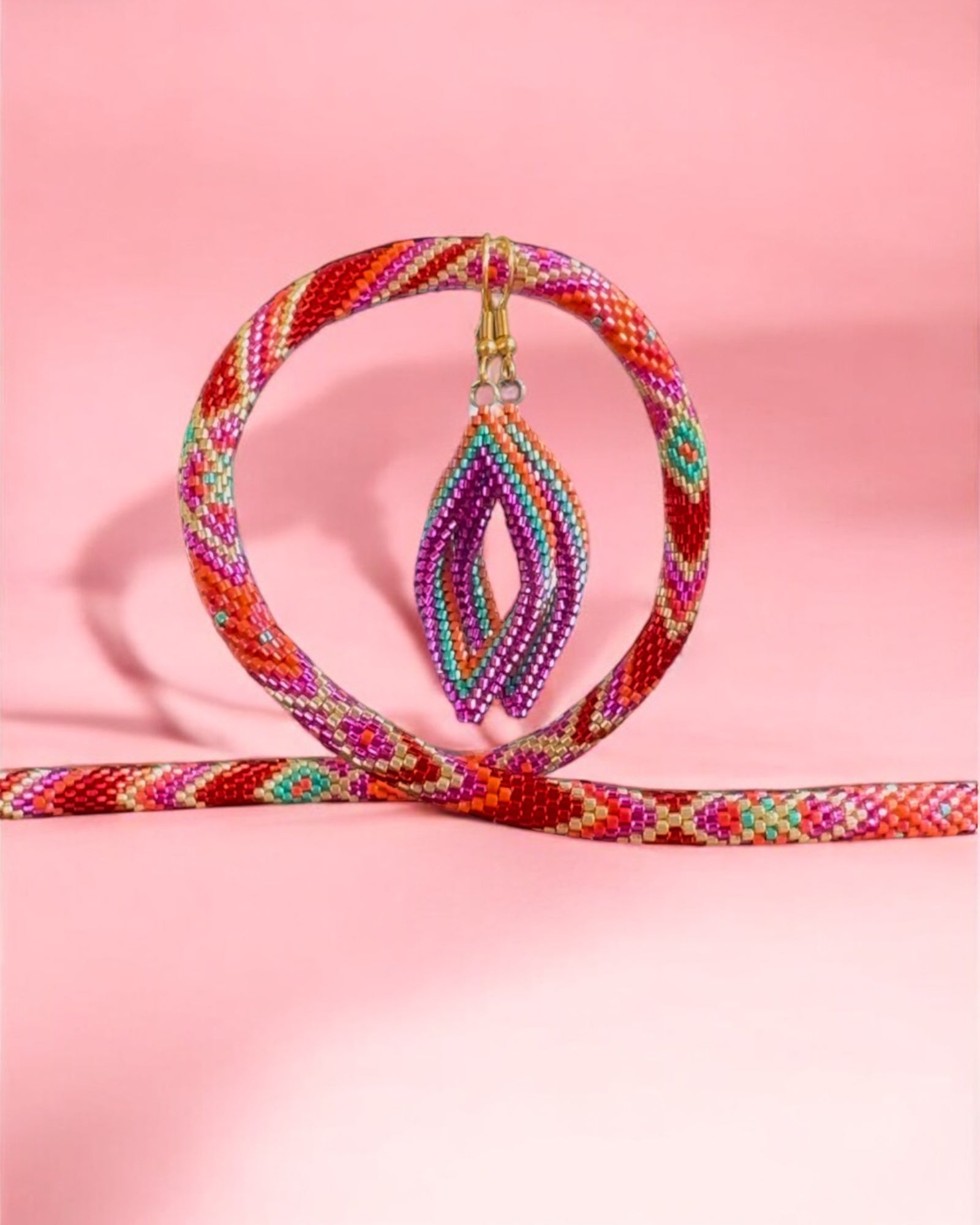 Draag deze choker als een statement piece bij een chique outfit of als speelse toevoeging aan je dagelijkse look. Perfect voor festivals, etentjes of gewoon om jezelf te verwennen met een uniek, handgemaakt sieraad.