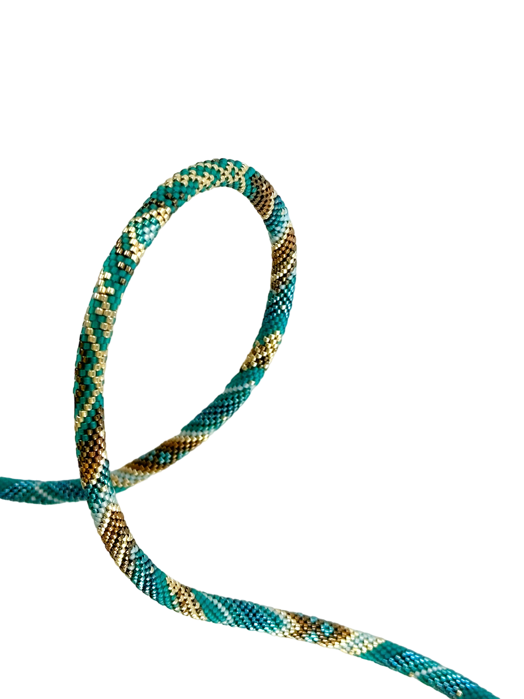 Met de kleuren van de zee en het goud dat eruit glittert, straalt deze ketting zomer uit. En wie kan er nou ook niet een beetje zomer in de winter gebruiken?!